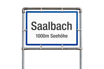 Ortseinfahrt, Schild, Saalbach, Österreich