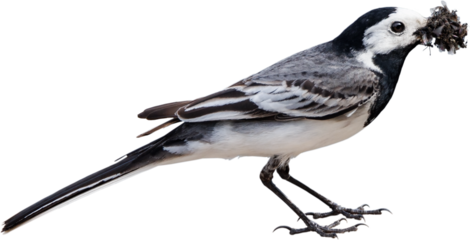 Bachstelze mit sehr viel Beute im Schnabel mit transparenten Hintergrund
