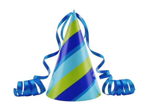 Transparent party celebration with enthusiastic redhead woman and party hat