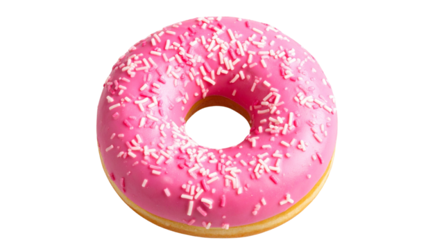 Pink Glazed Donut with Sprinkles Isolated on White Back ground.