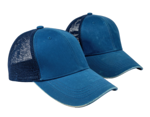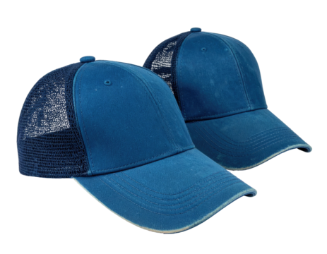 Ergonomic office chair, blue mesh upholstery and headrest, back support for home office. Transparent background