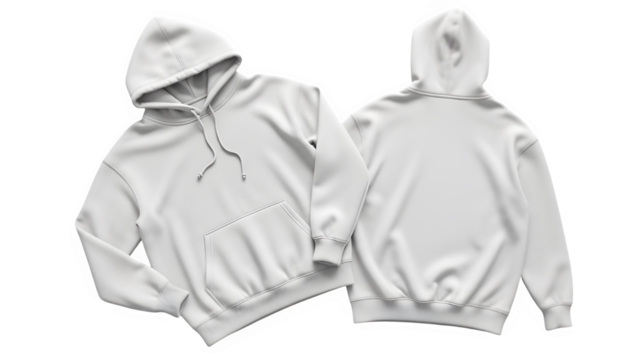 White hoodie mockup front and back view isolated on white background for design presentation