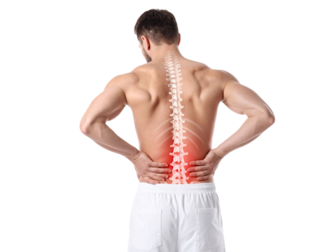 Men experiencing lower back pain and body discomfort isolated on transparent background png