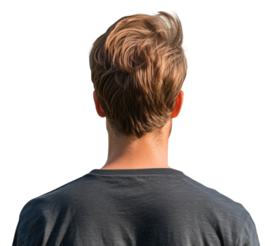Back view of a young man with tousled hair