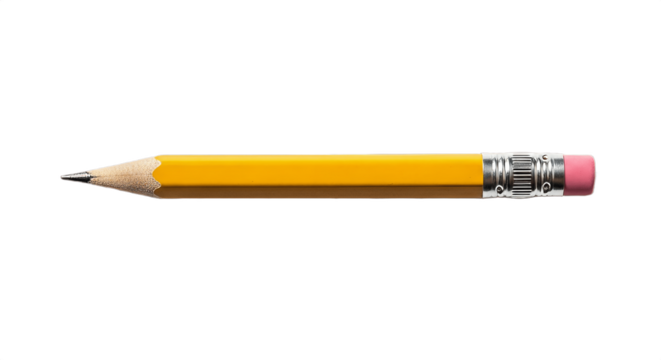 Yellow realistic pencil with eraser on transparent background, symbolizing education, drawing, and creativity