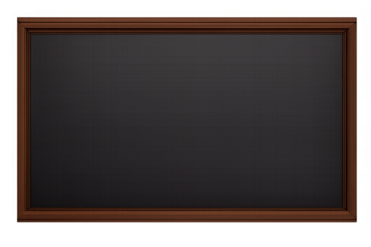 Blank dark screen with a brown frame providing space for text, advertisement, and educational content on transparent background