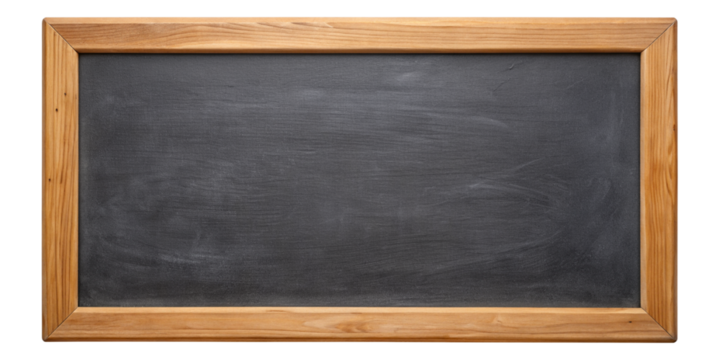 Professional Blank Blackboard in Wooden Frame on Transparent Background