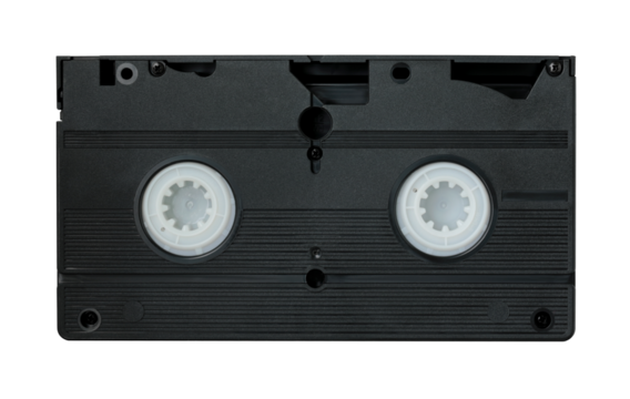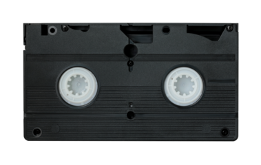 Backside of retro old analog video cassette, isolated on white background, top view, retro things concept