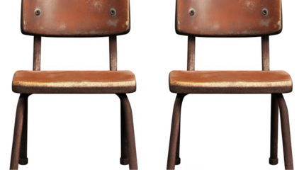 Antique ornate carved dark wood chair with upholstered seat and back isolated on transparent background