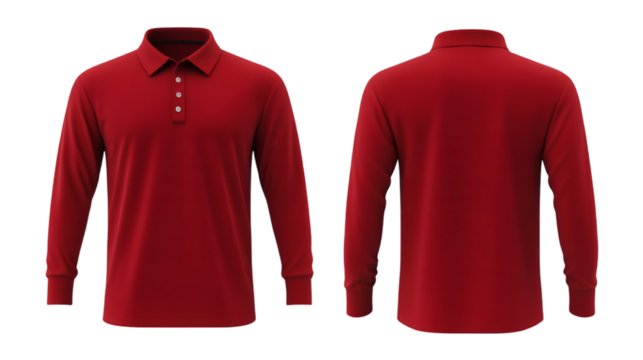 Plain Light Red Long Sleeve Polo Shirt Mockup Front and Back Views 3D Rendering on transparent background
