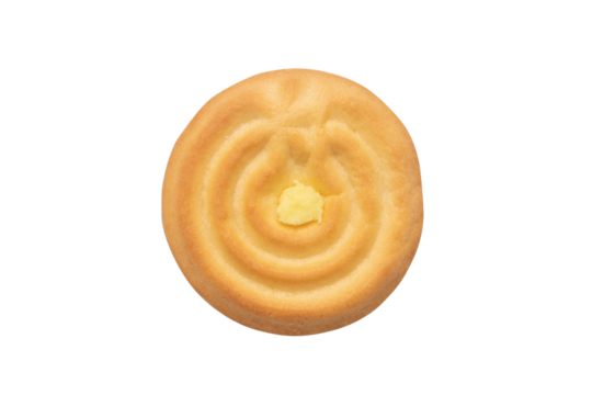 Top view of cream-filled vanilla cookie isolated on a white backbround