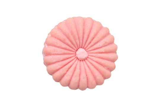 Top view of pink cream-filled vanilla cookie isolated on a white backbround