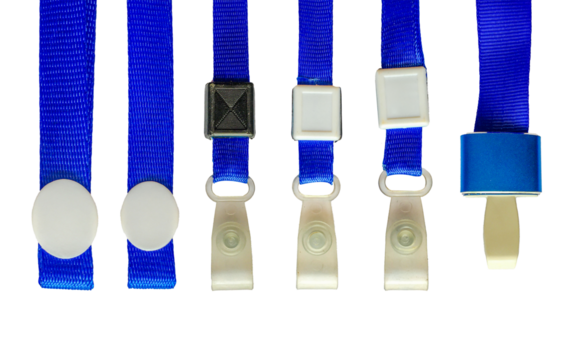 Set fo ID Card Lanyard Color Sling png, Name badge on a string isolated on white background, Blank colored lanyard for name card mockup set, side view