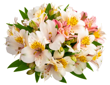 ummer season flowers bouquet made with Alstroemeria , isolated on transparent backgr