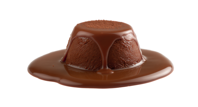 Chocolate mousse dessert, melted chocolate, sweet treat, cocoa powder, gourmet food, delicious confectionery, rich dessert, culinary photography, food styling, close up, studio shot, white backgr