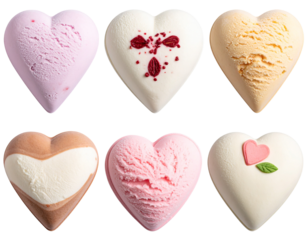 Heart shape ice cream scoops set of different shapes over isolated transparent backgr