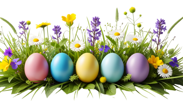 Easter eggs for easter sunday isolated on transparent background colorful decorated eggs
