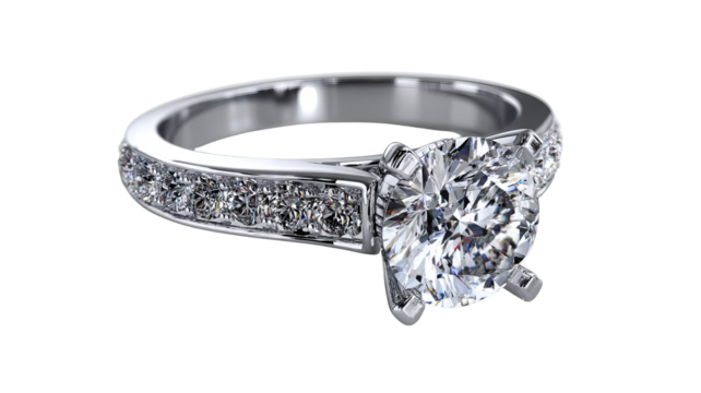 Silver wedding ring with diamond isolated in high resolution png style with clean transparent background feel, sparkling detailed cutout ideal for bridal jewelry branding, engagement and marriage