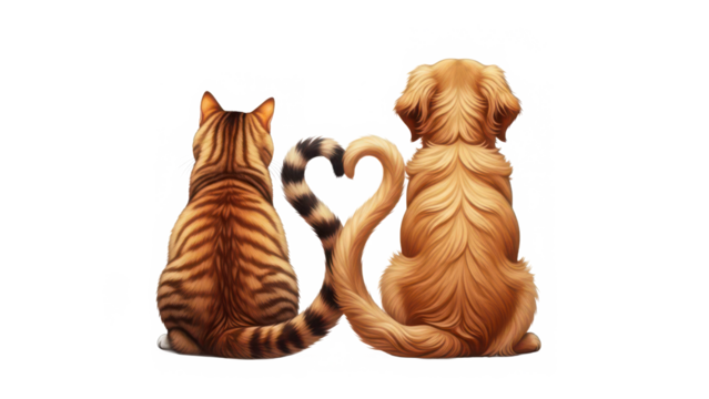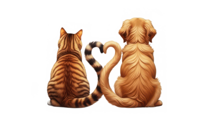 A heartwarming bond: cat and dog tails form a perfect heart, symbolizing deep friendship isolated on transparent background