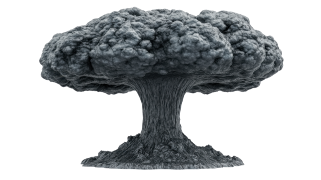 Radioactive warning symbol on a weathered and distressed sign representing hazard, danger, and nuclear energy on transparent background