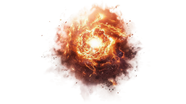 Supernova, a spectacular explosion of light and energy, signaling the end of a star's life isolated on transparent background