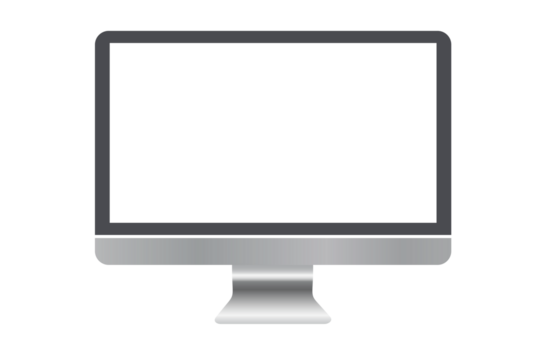 Computer monitor mockup. Pc template with blank screen. Silver desktop isolated on white or transparent background.