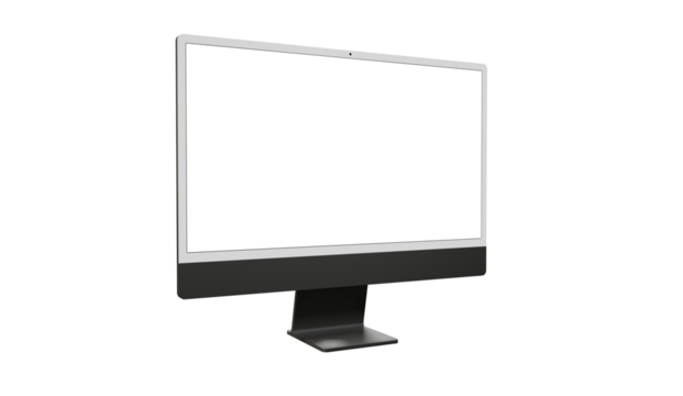 A sleek computer monitor with a vibrant blank white screen isolated on a transparent background, Generative AI