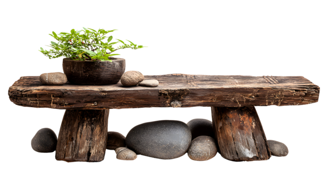 Rustic Wooden Stool for Garden Decor – Minimal Natural Design (Isolated)