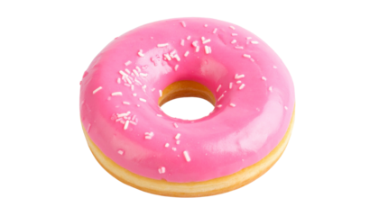 Pink Glazed Donut with Sprinkles Isolated on White Back ground.