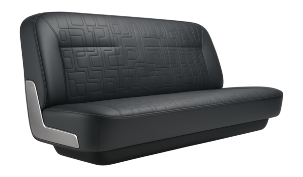 Vinyl rear bench seat with embossed pattern and single-piece backrest