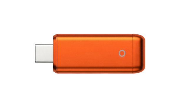 Isolated orange USB Type-C flash drive, data storage device, external memory stick, backup