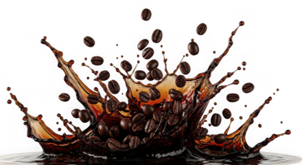 Coffee bean splash isolated on transparent background, a caffeinated beverage