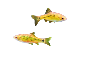 Schuberti Barbus (Barbus semifasciolatus) is a beautiful and yellow fish whose behavior is typical for barbuses, isolated on a white background