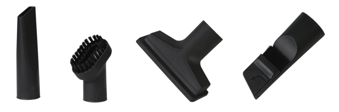 replaceable brush nozzles for a vacuum cleaner on a transparent background close-up