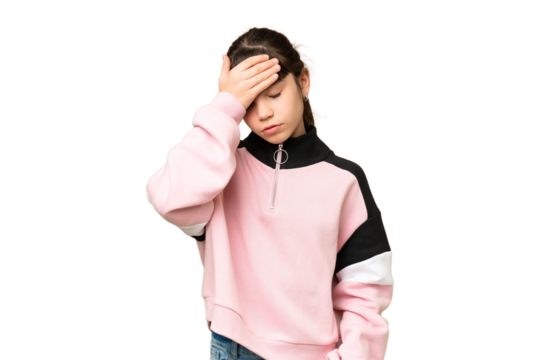 Little caucasian kid over isolated chroma key background with headache