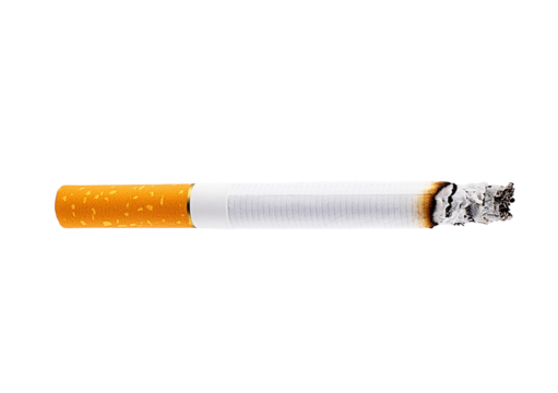 Dirty stone ashtray is overflowing with cigarette butts, ashes, and remnants of burnt tobacco, indicating heavy smoking habits, isolated on a transparent background