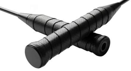 Close up of black badminton racket grip, sports equipment for playing badminton game isolated on transparent background