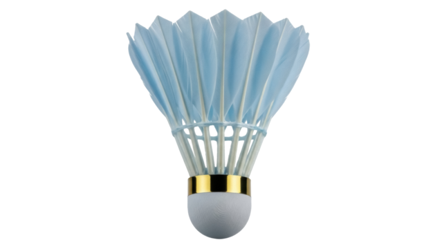 Light blue badminton shuttlecock isolated PNG on transparent background, sport equipment for recreational games and competitive play