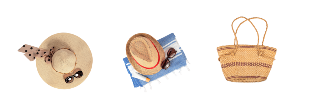Summer Set with Straw Hats, Bag and Sunglasses.