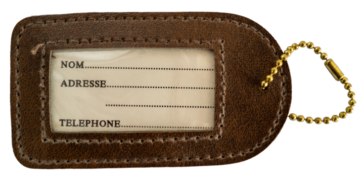 étiquette identification bagage sur fond transparent