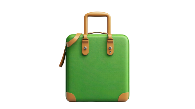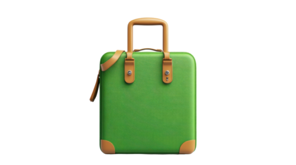 Green suitcase with leather straps on transparent background