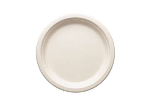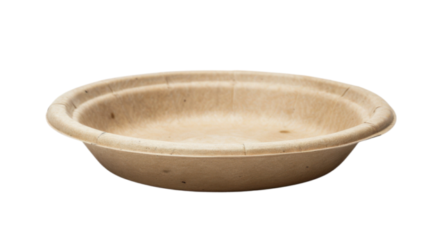 Empty round disposable eco-friendly biodegradable sugarcane bagasse bowl on transparent background