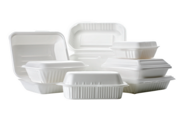 Assorted Sizes Of White Biodegradable Food Containers isolated on transparent background