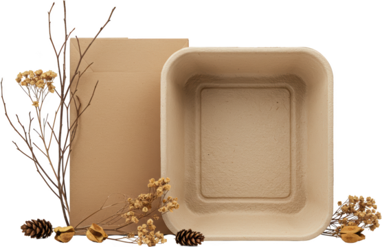 Eco Friendly Disposable Bagasse Food Container with Kraft Paper and Dried Flowers