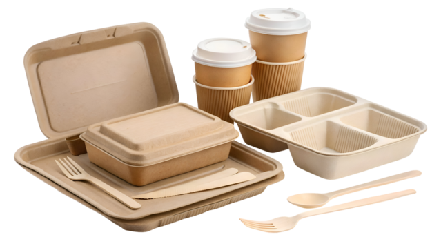 Biodegradable & Compostable Eco-Friendly Food Packaging Set: Plates, Cups, Containers, and Cutlery