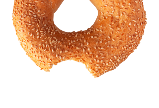 Bread mockup. Fresh round wheat bagel with sesame seeds isolated on white background. With clipping path. Cut out Crispy bread, healthy organic food, bakery product, element for advertising