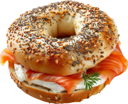 A delectable everything bagel with sesame seeds and spices on a transparent background perfect for breakfast or a snack
