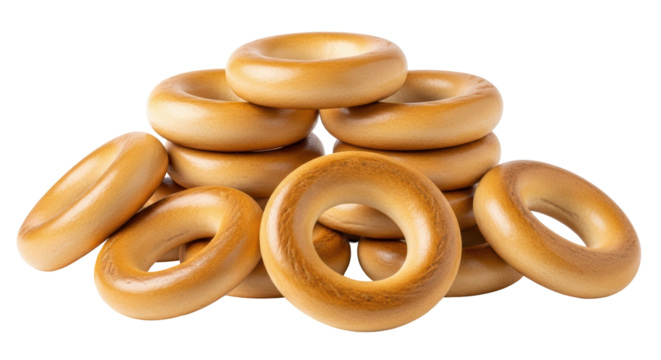 Fresh plain bagels with golden crust bundle isolated on a transparent background