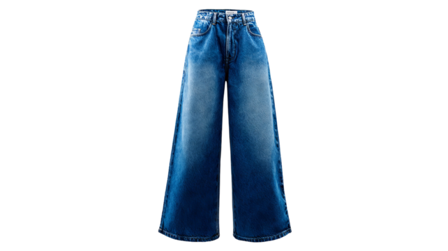 Isolated wide-leg denim pants on transparent background — high-resolution PNG cutout for apparel mockups, fashion design, e-commerce listings, clothing catalogs, and branding
