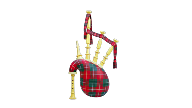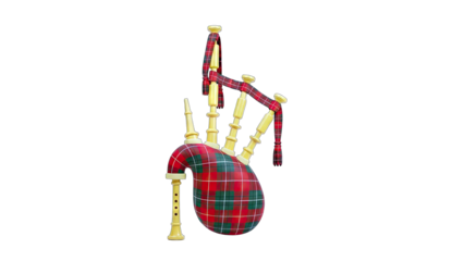 Scottish bagpipe musical instrument on transparent background